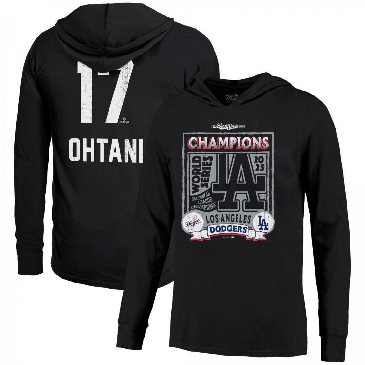 Los Angeles Dodgers Shohei Ohtani Majestic Threads Black 2025 World Series Champions Name & Number Lightweight Hoodie