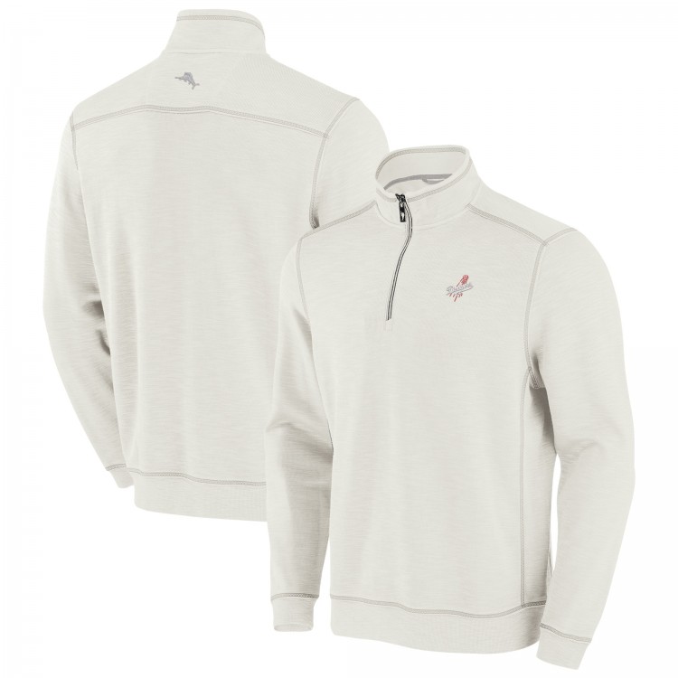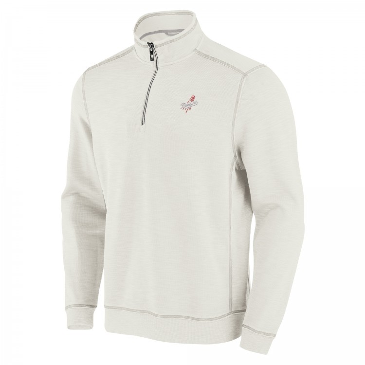 Los Angeles Dodgers Tommy Bahama Cream Sport Tobago Bay Tri-Blend Half-Zip Sweatshirt