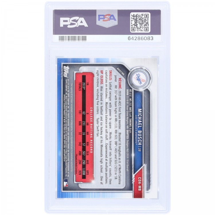 Michael Busch Los Angeles Dodgers Autographed 2019 Bowman Chrome 1st Bowman Gold Wave Refractor #CDA-MB #23/50 PSA Authenticated 10/10 Card