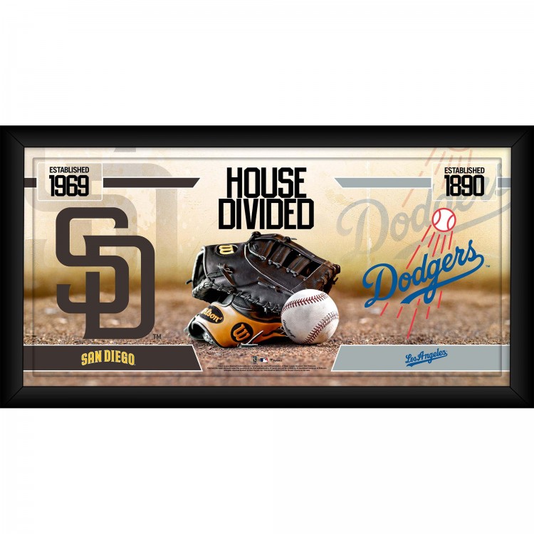 San Diego Padres vs. Los Angeles Dodgers Framed 10 x 20 House Divided Baseball Collage