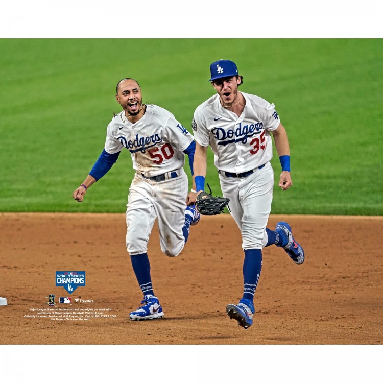 Unsigned Los Angeles Dodgers Cody Bellinger and Mookie Betts Fanatics Authentic 2020 MLB World Series Champions Celebration Photograph