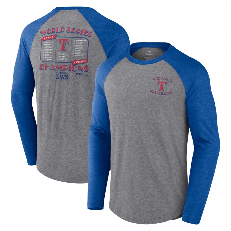 Футболка с длинным рукавом Texas Rangers 2023 World Series Champions Roster Tri-Blend Raglan - Heather Gray