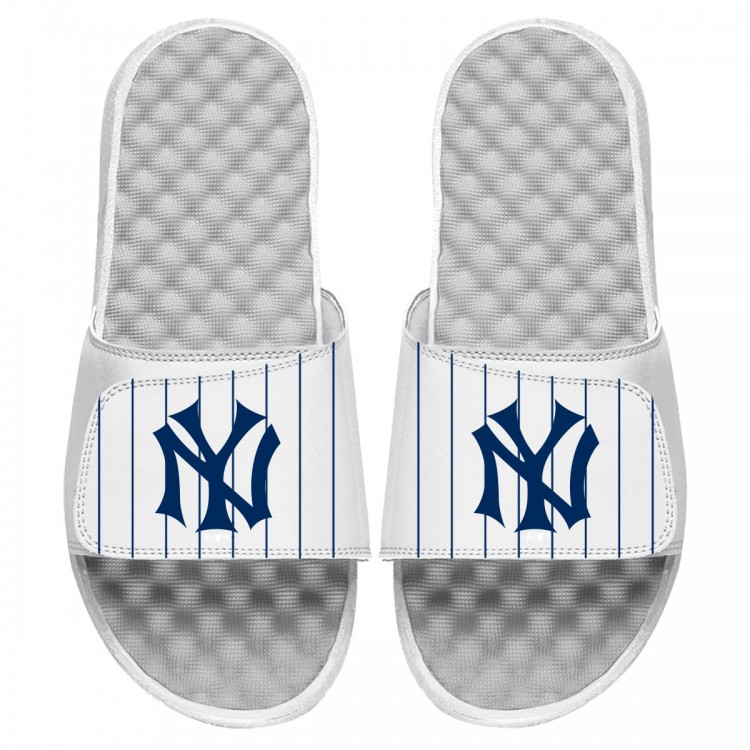 New York Yankees ISlide White Cooperstown Pinstripe Logo Slide Sandals