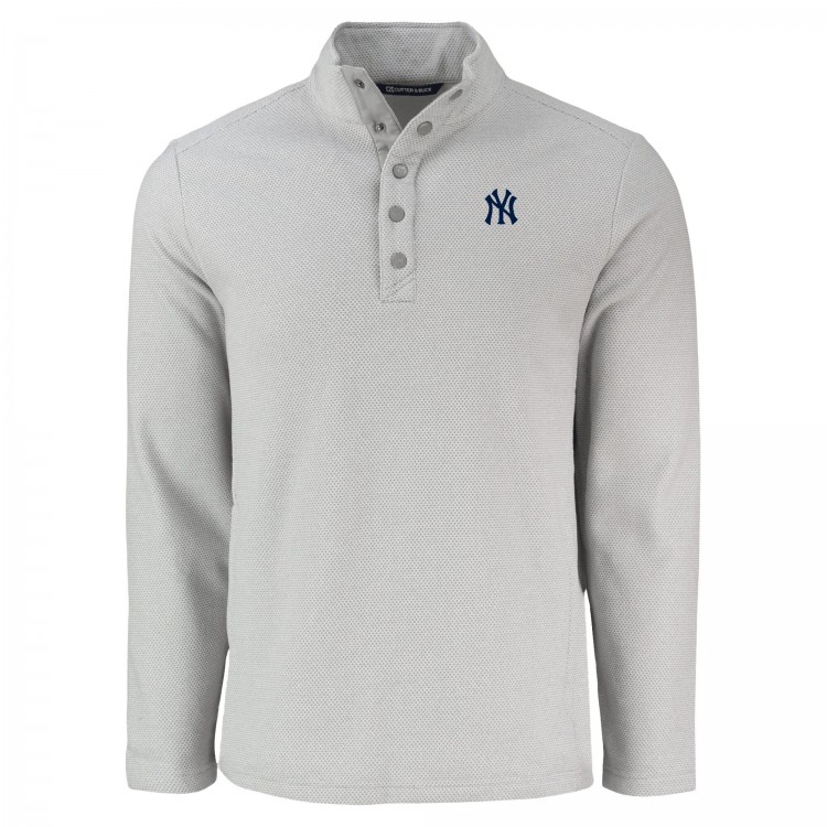 New York Yankees Cutter & Buck Gray Hunts Point Eco Textured Fleece Recycled Half-Snap Sweatshirt