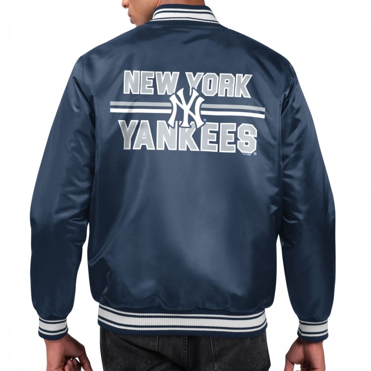 New York Yankees Starter Navy Printed Team Logo Satin Varsity Full-Snap Jacket