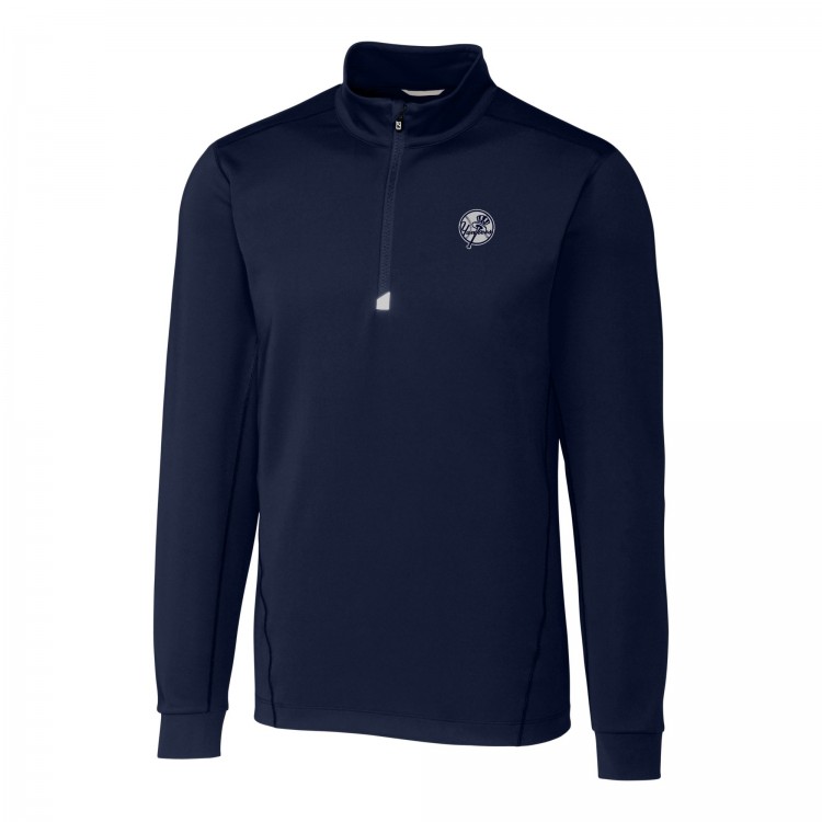 New York Yankees Cutter & Buck Navy Traverse Eco Tri-Blend DryTec Quarter-Zip Jacket