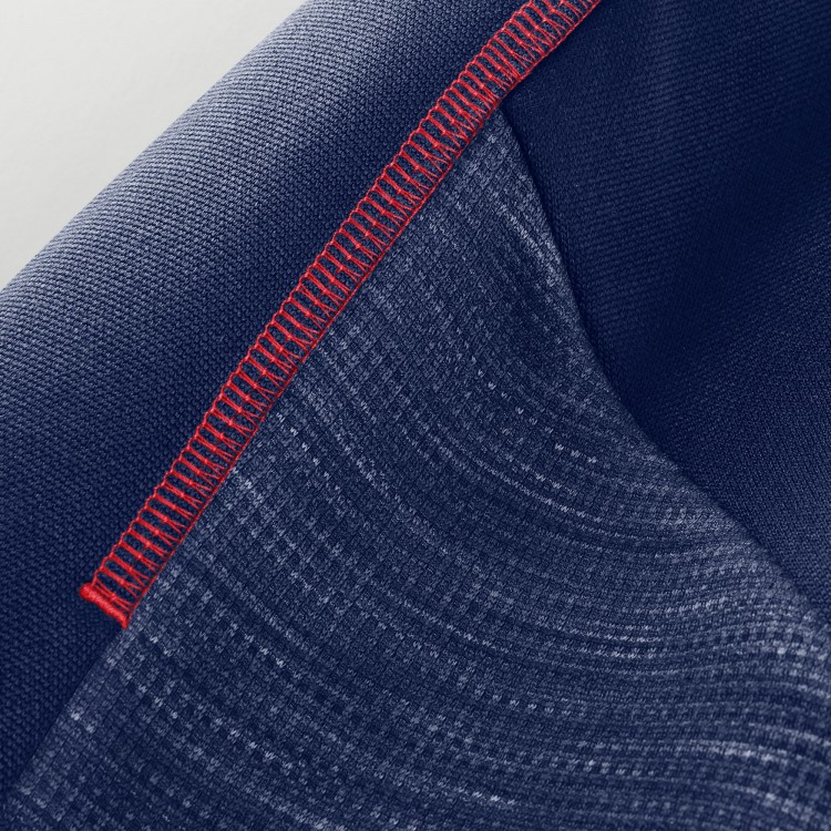 Silicone team name heat-sealed across the back has a smooth, rubberized finish that's designed to stretch with the fabric without cracking