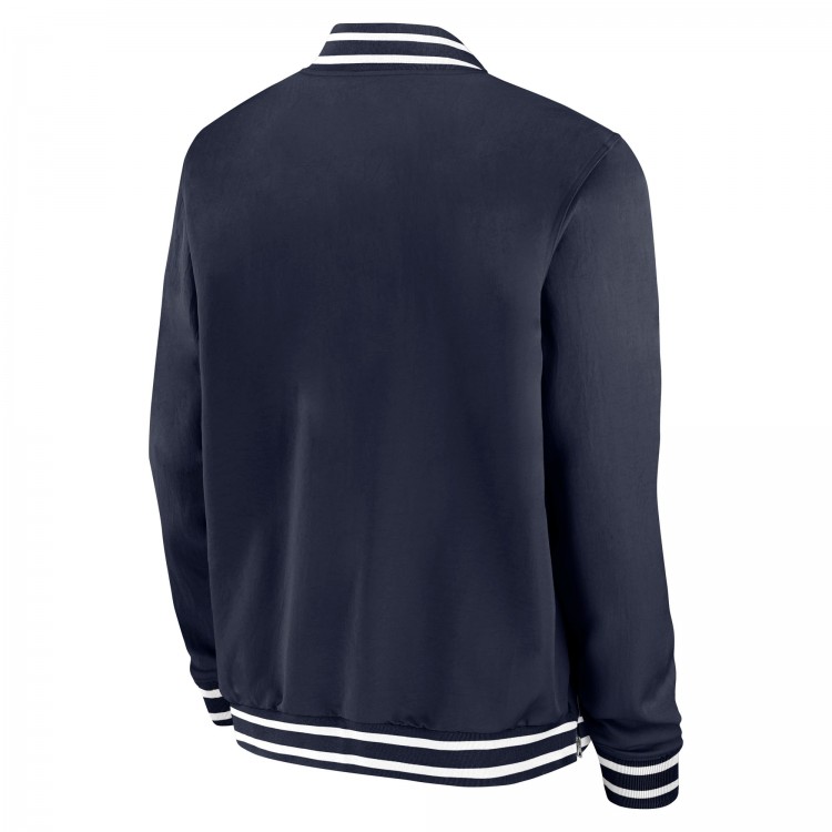 Vertical zippered patch pocket with zipper garage on left sleeve