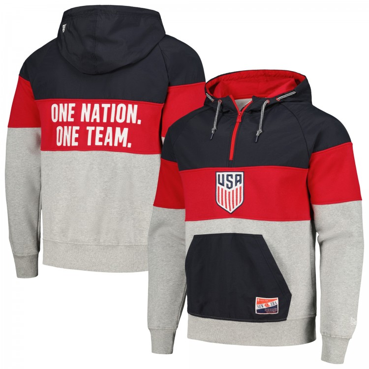 Кофта на короткой молнии USMNT 5th & Ocean by New Era Raglan - Navy/Gray