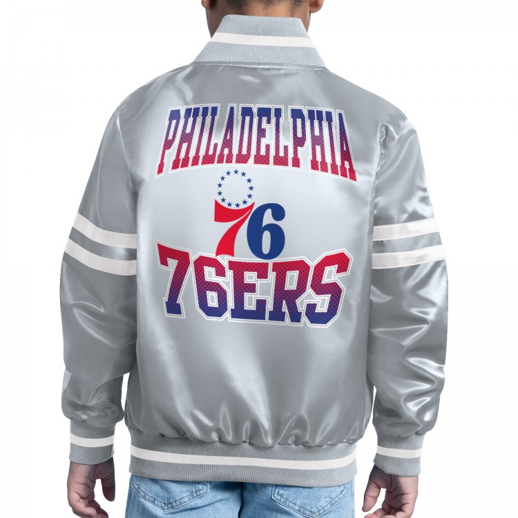 Подростковая Philadelphia 76ers Starter Gray Comic-Style Satin Full-Snap Varsity Jacket