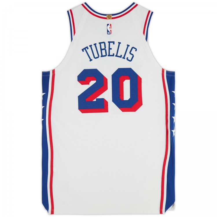 Ąžuolas Tubelis Philadelphia 76ers Fanatics Authentic Player-Issued #20 White Nike Jersey from the 2023-24 NBA Season - Size 52+4