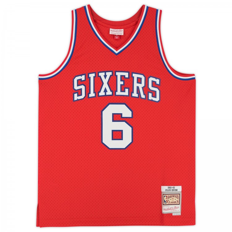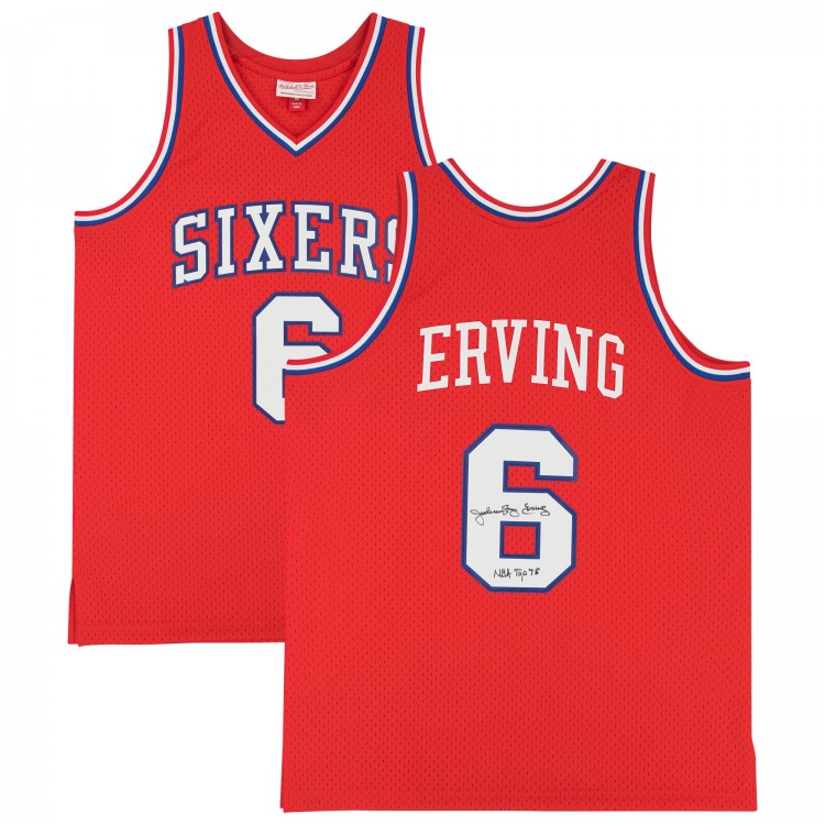 Autographed Philadelphia 76ers Julius Erving Fanatics Authentic Red Mitchell & Ness 1982-83 Swingman Jersey with NBA Top 75 Inscription