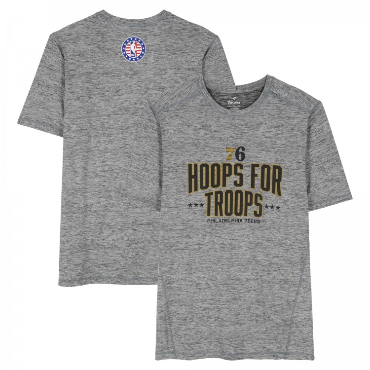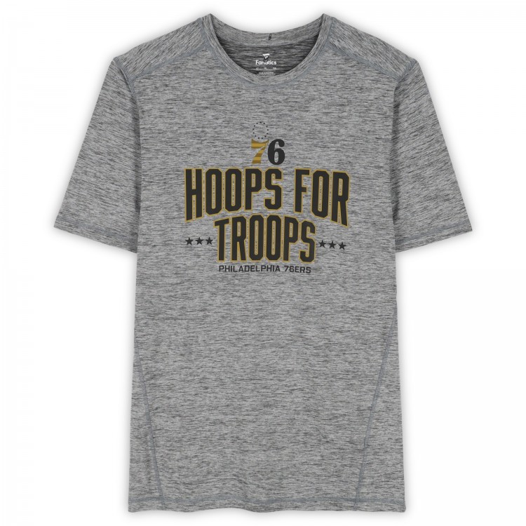 Joel Embiid Philadelphia 76ers Fanatics Authentic Player-Worn Gray Hoops For Troops T-Shirt from the 2025-26 NBA Season - Size XLT