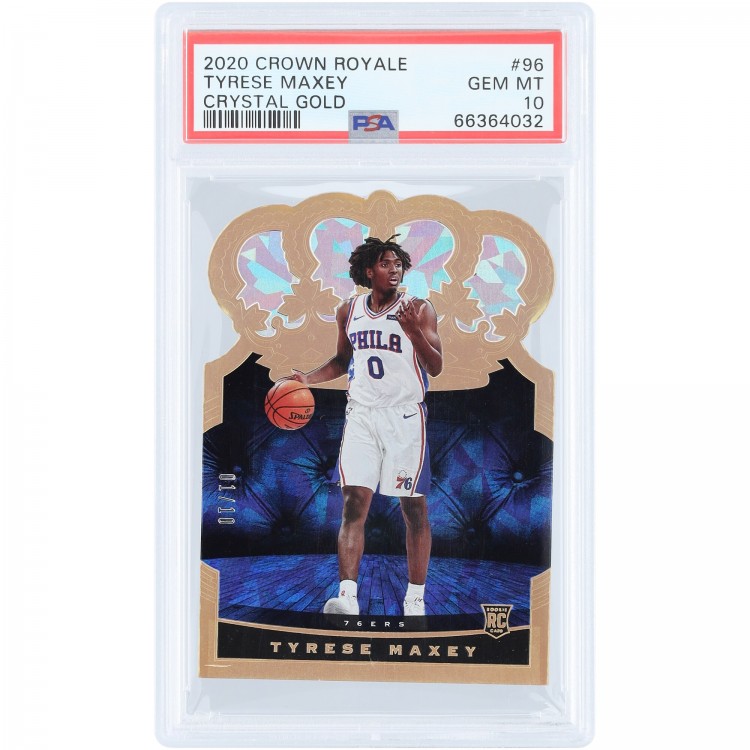 Tyrese Maxey Philadelphia 76ers 2020-21 Panini Crown Royale Crystal Gold #96 #1/10 PSA Authenticated 10 Rookie Card