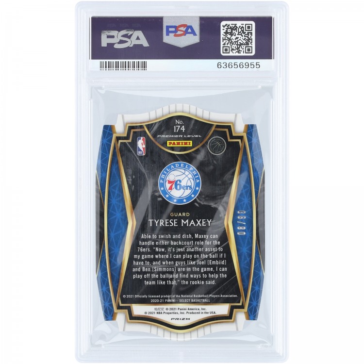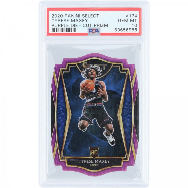 Tyrese Maxey Philadelphia 76ers 2020-21 Panini Select Die Cut Purple Prizm #174 #8/99 PSA Authenticated 10 Rookie Card