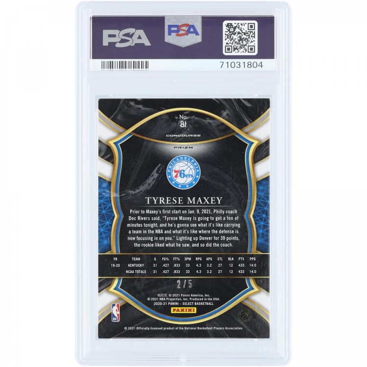 Tyrese Maxey Philadelphia 76ers 2020-21 Panini Select Green Disco Prizm #81 #2/5 PSA Authenticated 9 Rookie Card