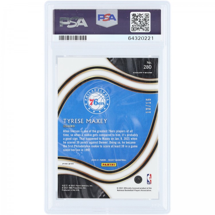 Tyrese Maxey Philadelphia 76ers 2020-21 Panini Select Neon Orange Pulsar Prizm #280 #13/15 PSA Authenticated 9 Rookie Card