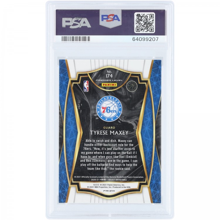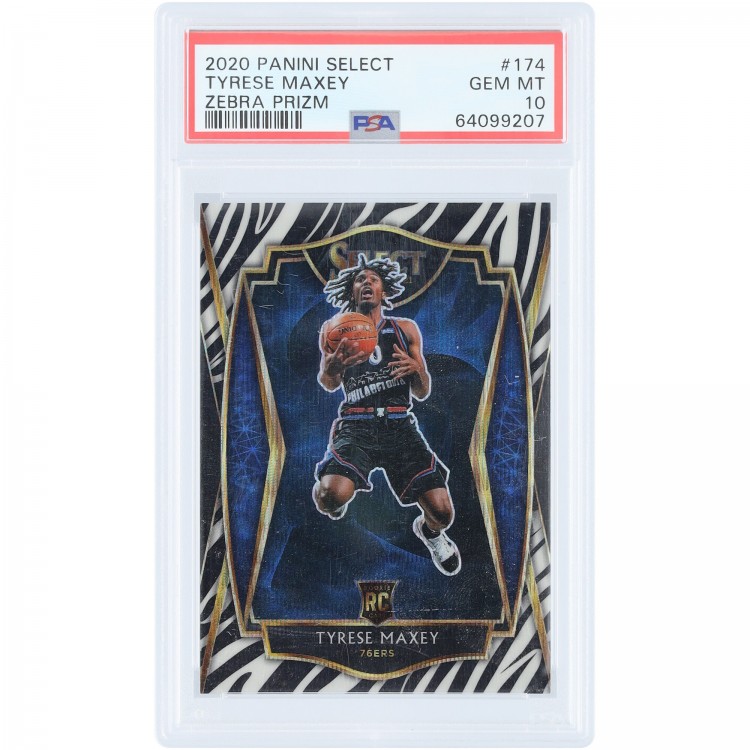 Tyrese Maxey Philadelphia 76ers 2020-21 Panini Select Zebra Prizm Case Hit #174 PSA Authenticated 10 Rookie Card