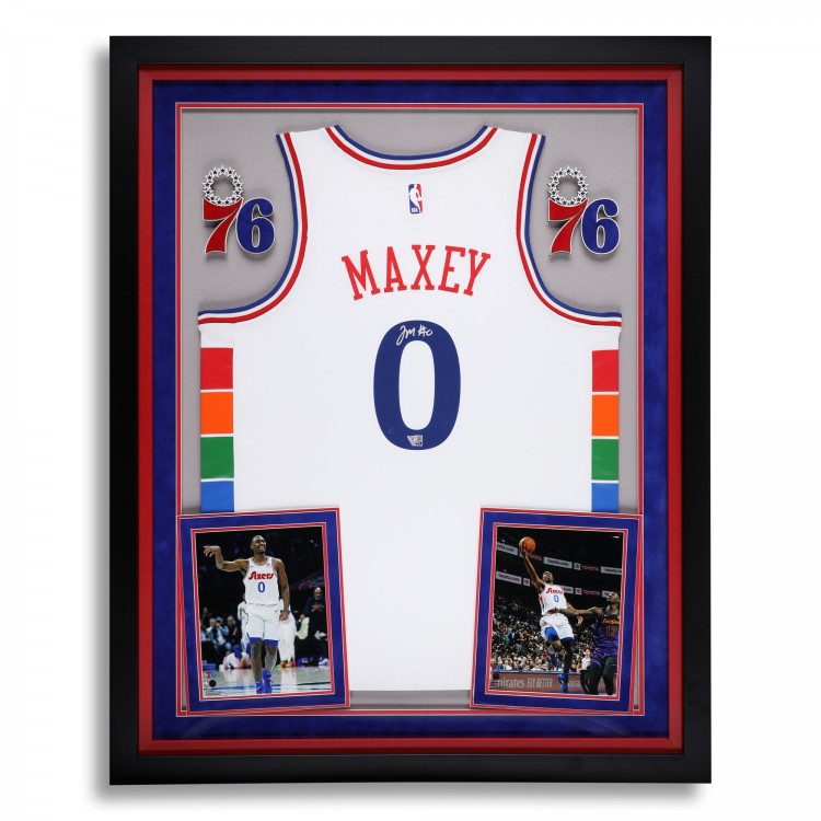 Tyrese Maxey Philadelphia 76ers Autographed Fanatics Authentic Deluxe Framed White Nike 2024-25 City Edition Swingman Jersey