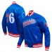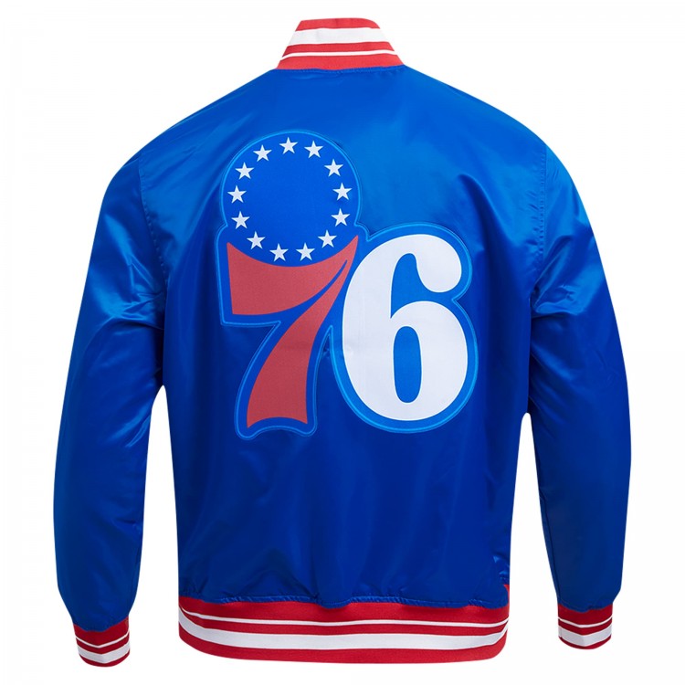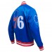 Philadelphia 76ers Pro Standard Royal Script Tail Full-Snap Satin Varsity Jacket