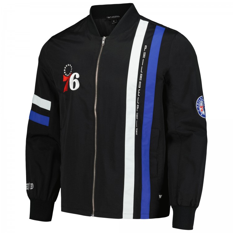 Unisex Philadelphia 76ers The Wild Collective Black Stitch Applique Full-Zip Bomber Jacket