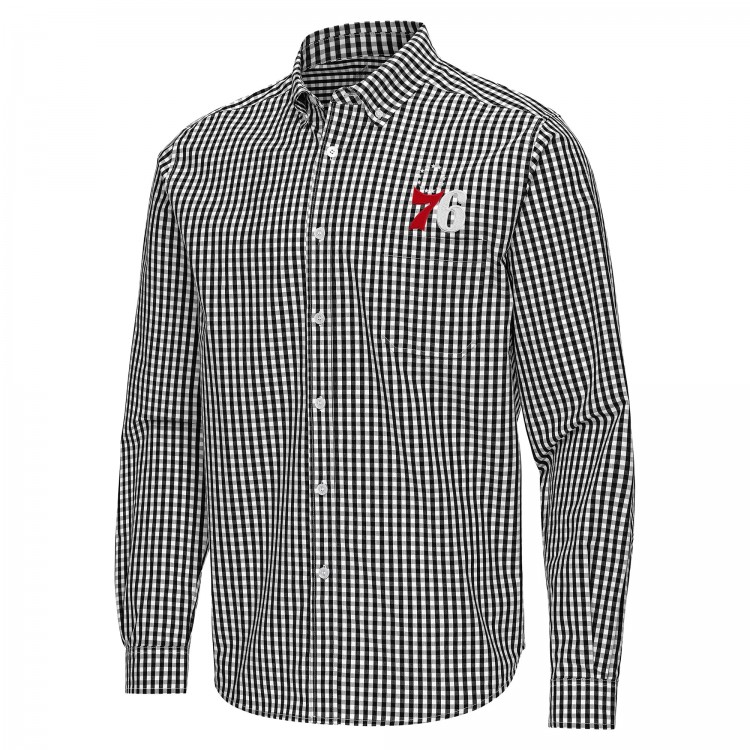 Philadelphia 76ers Antigua Black Ellis Woven Tri-Blend Button-Down Shirt
