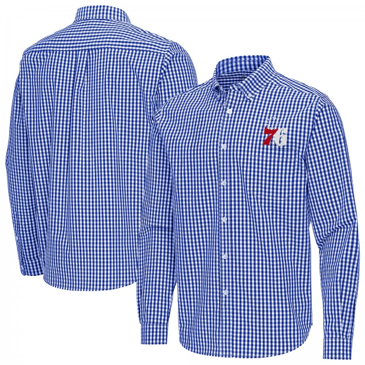 Philadelphia 76ers Antigua Royal Porter Woven Long Sleeve Button-Down Shirt