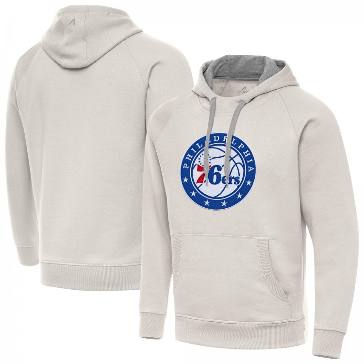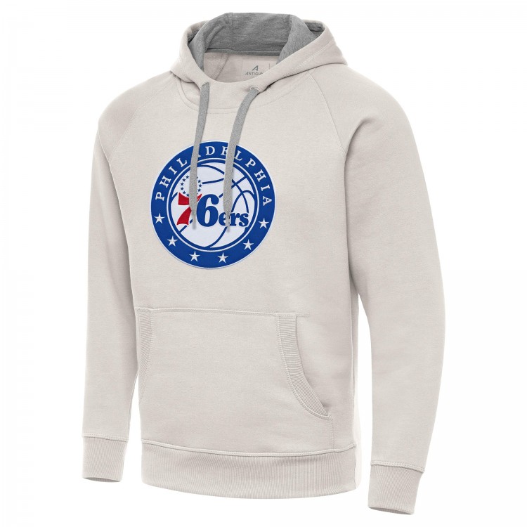 Philadelphia 76ers Antigua Cream Big Logo Victory Pullover Hoodie