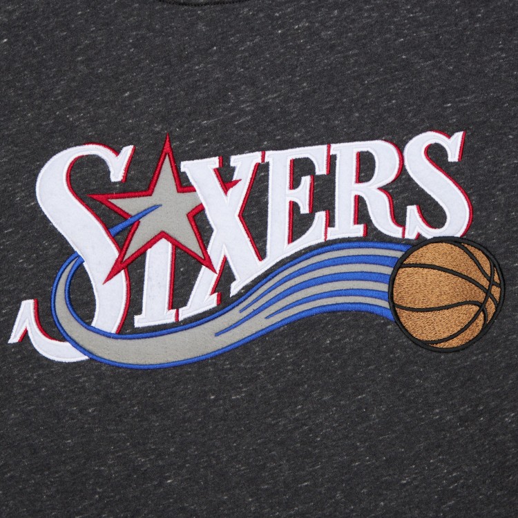 Philadelphia 76ers Black Hardwood Classics Blackout Collection Snow Washed Pullover Sweatshirt