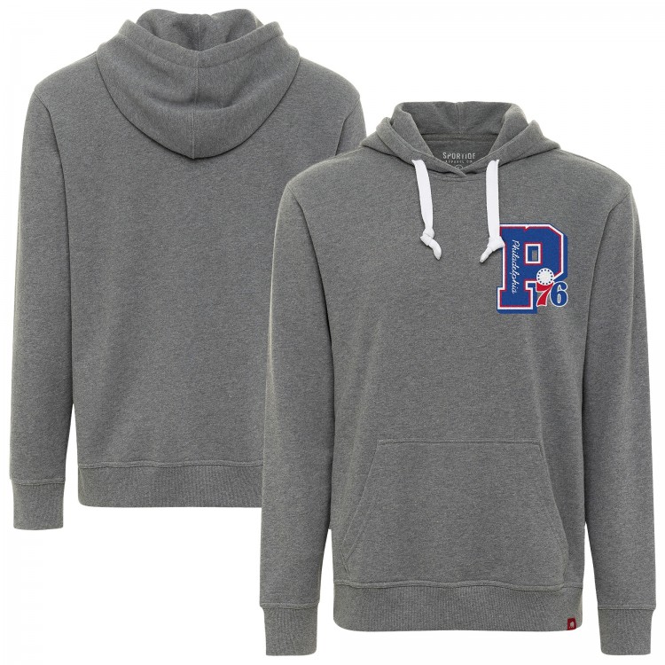 Unisex Philadelphia 76ers Sportiqe Heather Gray Varsity Collection Blake Pullover Hoodie