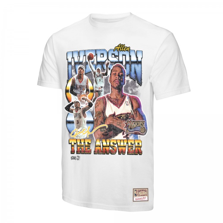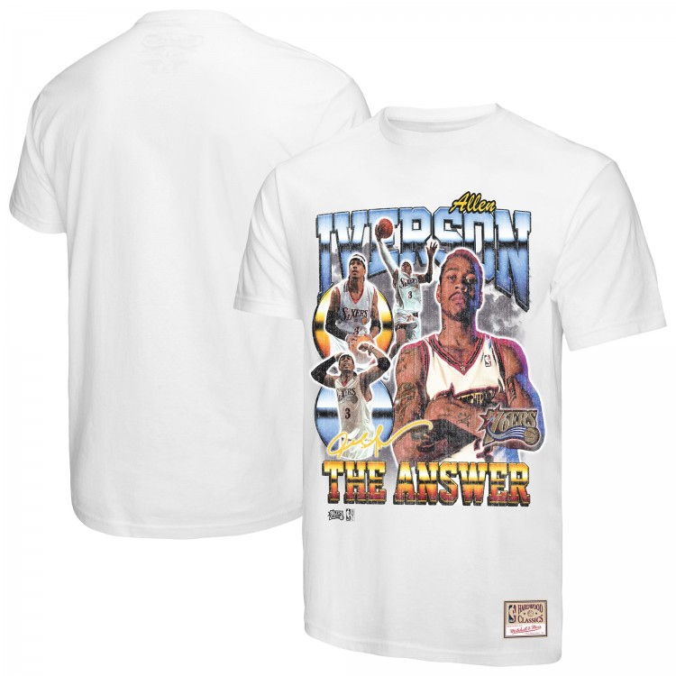 Philadelphia 76ers Allen Iverson Mitchell & Ness White Hardwood Classics Commemorative Player Collage T-Shirt
