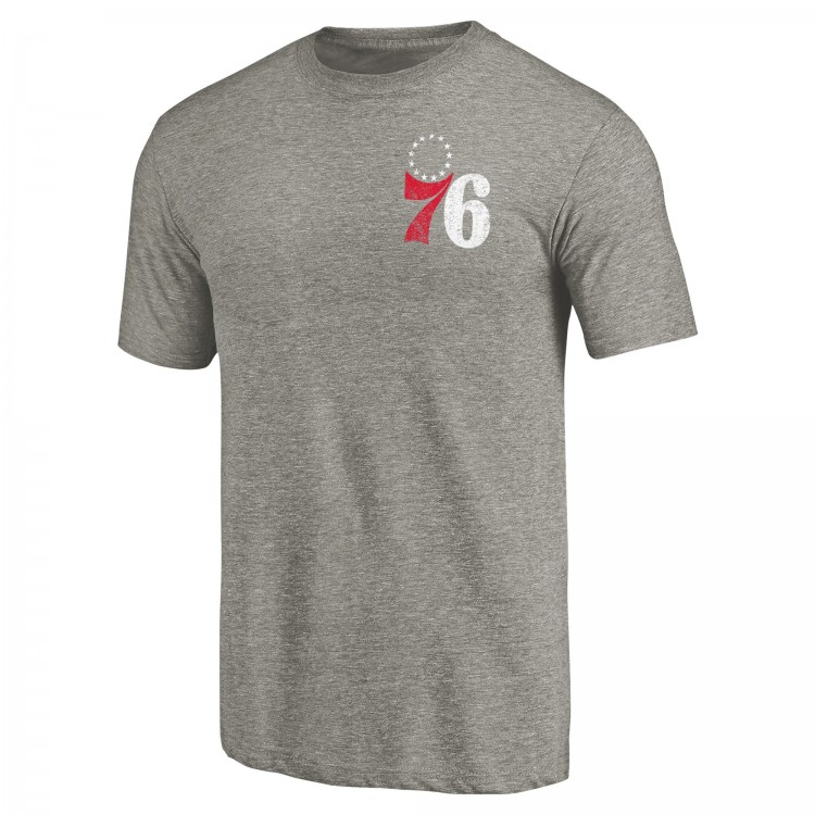 Philadelphia 76ers Gray Primary Logo Left Chest Distressed Tri-Blend T-Shirt