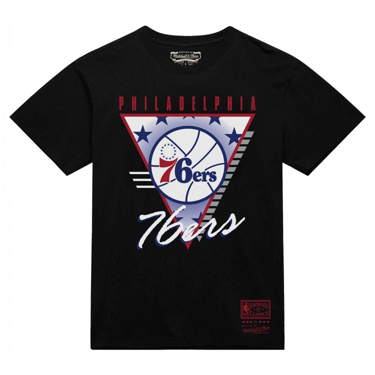 Philadelphia 76ers Mitchell & Ness Black Worldwide Collection Tri-Logo T-Shirt