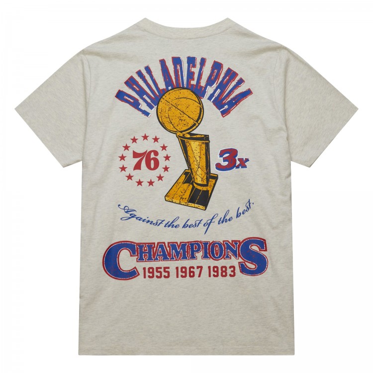 Philadelphia 76ers Mitchell & Ness Oatmeal Hardwood Classics Legacy Defined Retro Championship T-Shirt