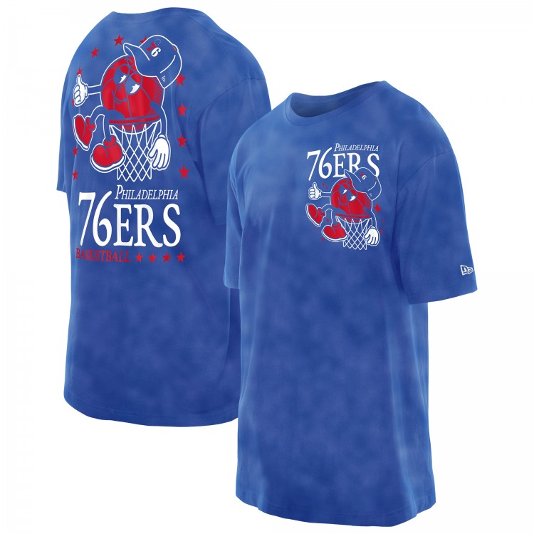 Philadelphia 76ers New Era Royal Old School Sport Enzyme Wash Oversized T-Shirt