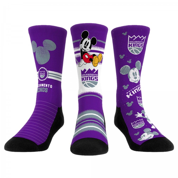 Три пары носков Mickey Mouse Sacramento Kings Rock Em Unisex Disney Crew - Purple