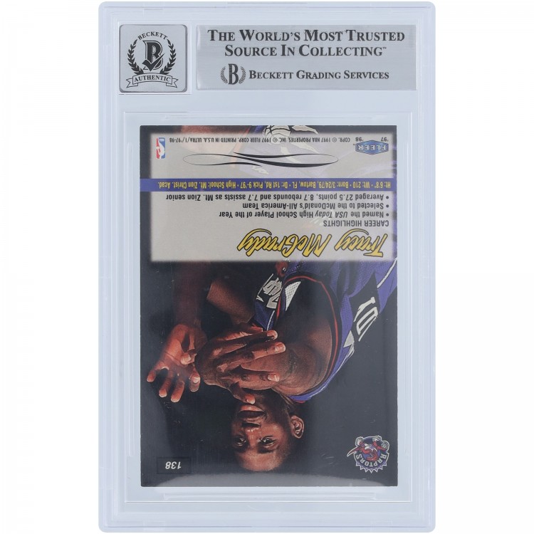 Tracy McGrady Toronto Raptors Autographed 1997-98 Fleer Ultra #138 Beckett Fanatics Witnessed Authenticated 10 Rookie Card with HOF 17 Inscription