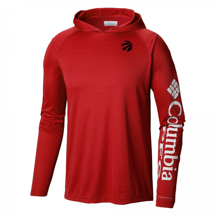 Toronto Raptors Columbia Red Terminal Tackle Long Sleeve Hoodie T-Shirt